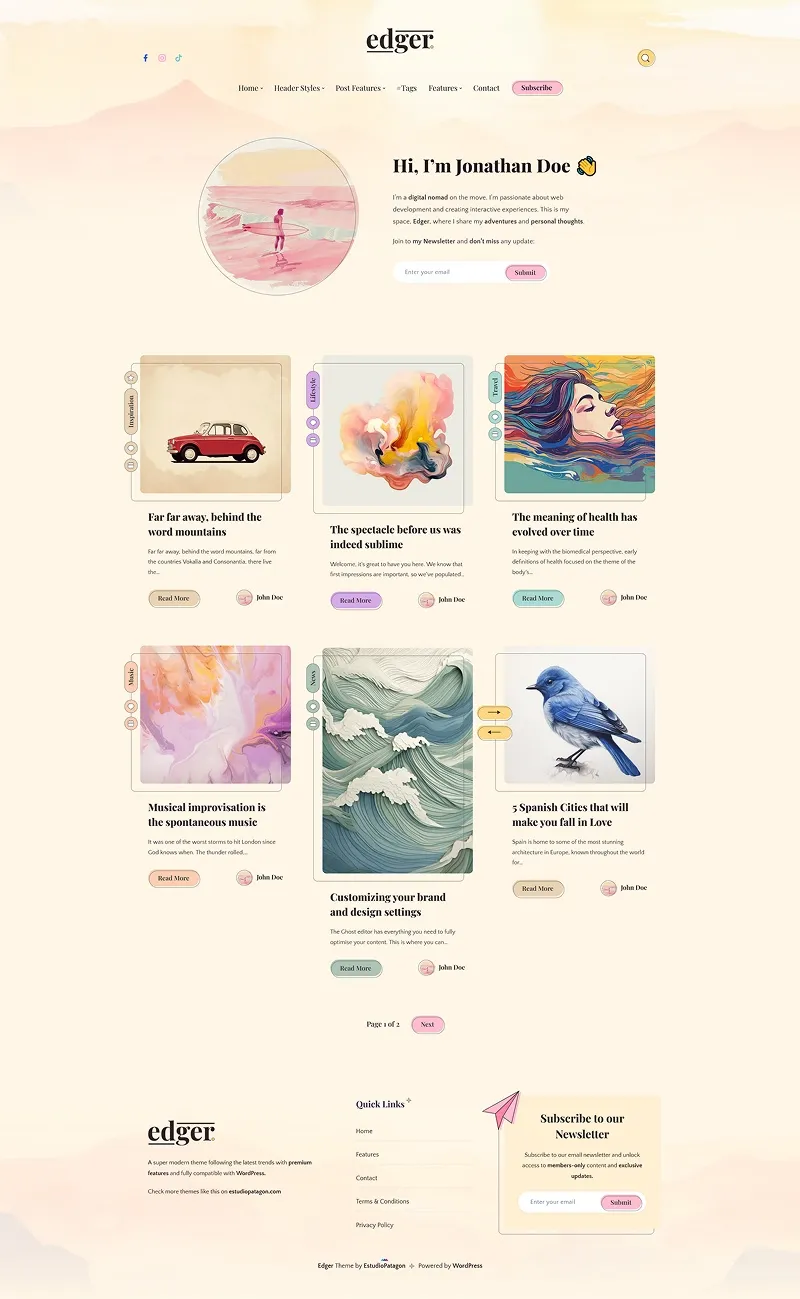 Rein is a modern Blog focused on high speed and dark colors, the theme fits perfectly any kind of blog specially lifestyle, photography, personal or coding blogs thanks to the high contrast.